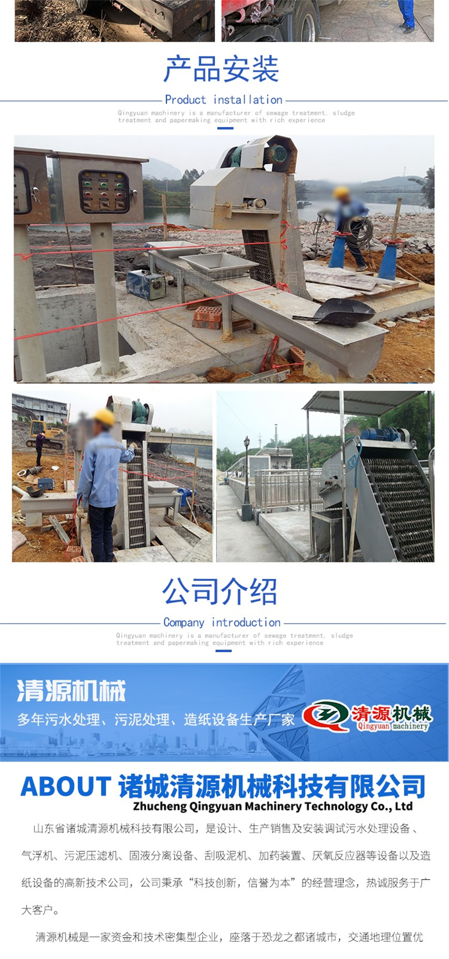 此外,我公司还生产洗沙污水处理设备、气浮机、污泥压滤机、固液分离设备、造纸设备等其他设备,欢迎订购联系!