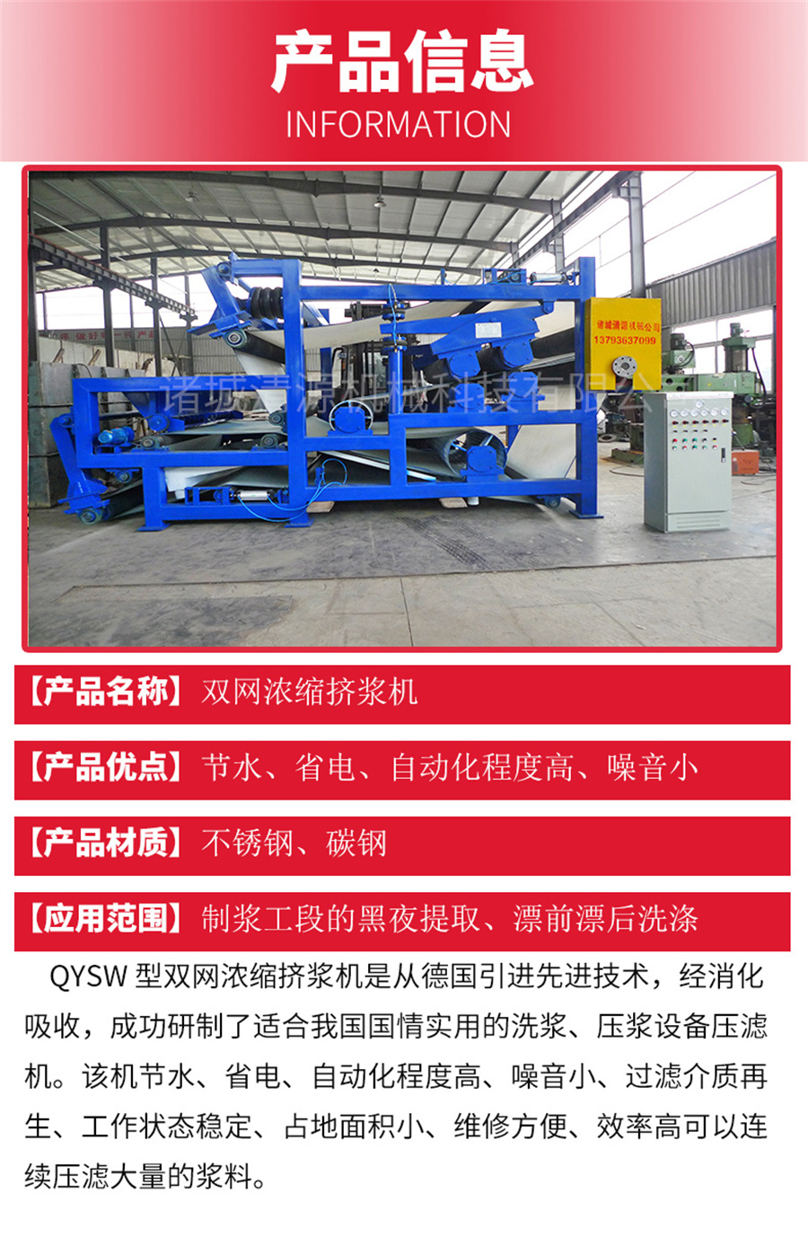 ZWS系列双网浓缩机适用于各种浆料的浓缩,双网浓缩机具有动力消耗较低,出浆浓度高(如果工艺需要,可达40%以上)且稳定,对进浆浓度的适用范围广(ZWS1型进浆浓度6-15%,ZWSII型进浆浓度0.5-5%)的优点。